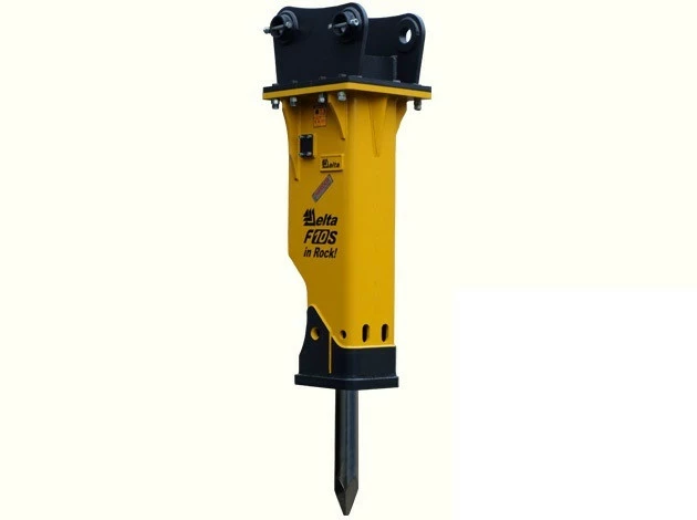 Гидромолот Delta разработан для подготовительных этапов строительства, разрушения старых построек, фундаментов, дорожных покрытий. Модель Delta F-10S предназначена для гидрофицированных экскаваторов и других машин, имеющих гидравлический привод – погрузчиков, манипуляторов и прочих массой 9-18 тонн, расширяя их функциональность. Может использоваться даже в самых неблагоприятных погодных условиях, работает даже в горизонтальном положении. Отличается шумозащитным корпусом.