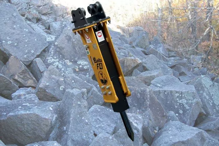 Если есть необходимость разрыхлить мерзлый или твердый грунт, раздробить твердые и скальные породы, раздробить дорожные покрытия, асфальт, демонтировать бетонные сооружения – идеальным решением будет гидромолот Delta F-4. Также он может забивать столбы дорожного ограждения, дорожные знаки.