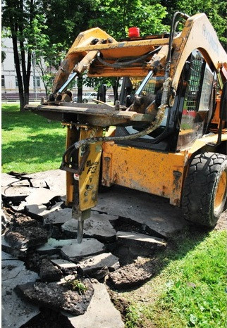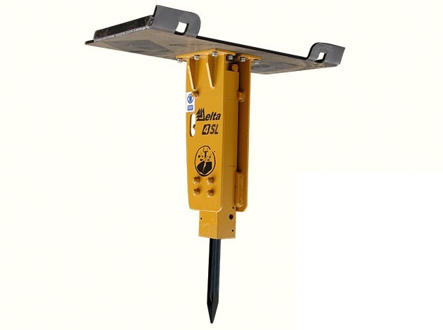 Для дробления твердых и скальных пород, дорожных покрытий, асфальта, демонтажа бетонных сооружений  удачным решением будет гидромолот Delta F-4SL. Монтируется на минипогрузчики массой 3-6 тонн.