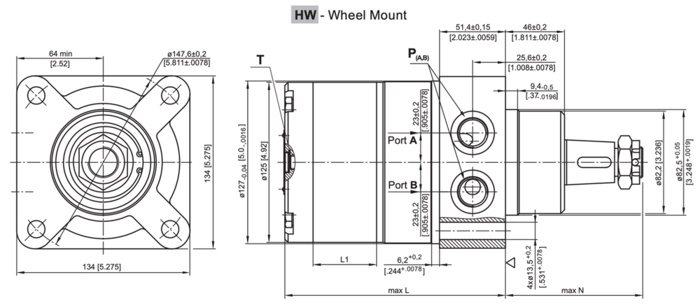 Боковые 2xG1/2, G1/4, BSP thread, ISO 228