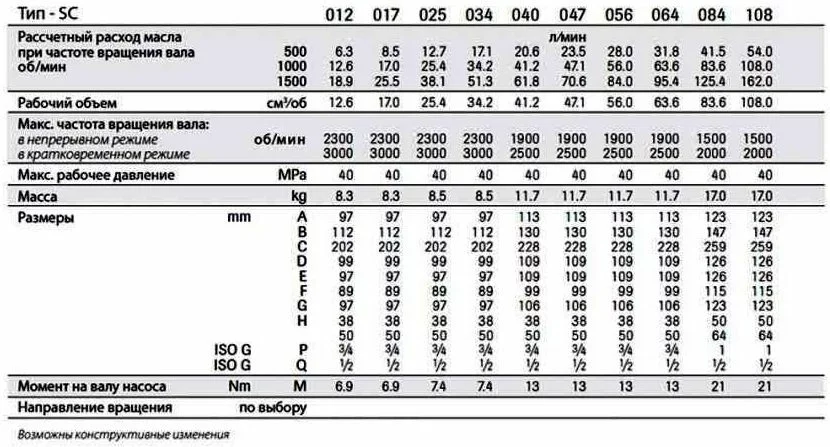 Технические характеристики гидронасоса