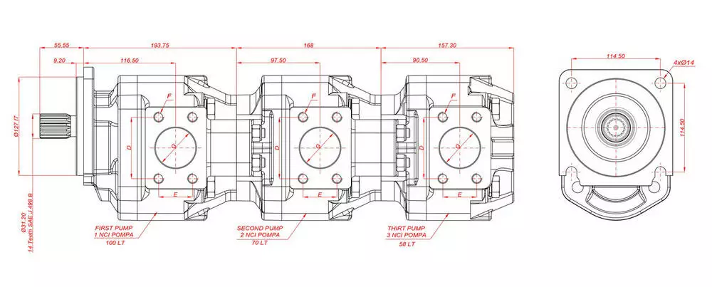 Состоит из трех секций пластинчатых гидронасосов AKVA серии.