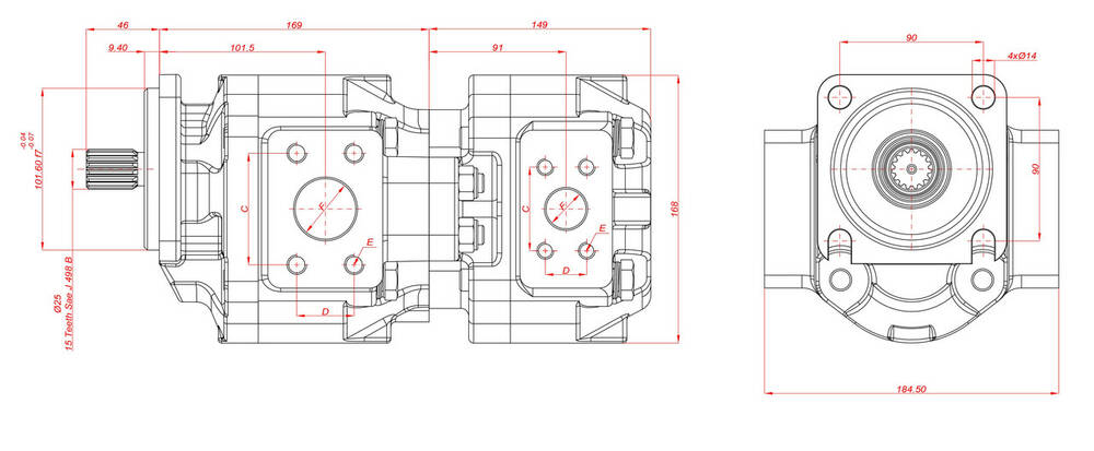 Гидравлический насос на KAWASAKI NEVİ тандем 58 L/R, постоянной производительности, нереверсивный.