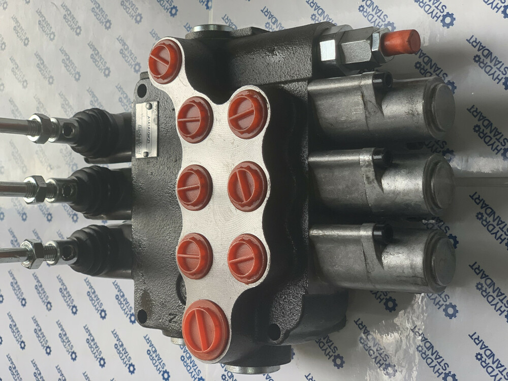 Гидрораспределитель модель Р80 3х секционный + 3 плавающих секции тип L12 ( подъем и опускание цилиндра - подпружиненные, плавающее положение- с фиксацией рычага) . Данные болгарские гидрораспределители являются моноблочными с номинальной подачей масла 80 л/мин производства Badestnost, оригинал, не Китай! Так же появилась модификация плавающего золотника - L13 ( все рабочие положения: подъем и опускание с фиксацией рычага, так же и плавающее с фиксацией рычага ). Возможна установка плавающего положения на любую из секций гидрораспределителя по желанию клиента, как и на все секции.
