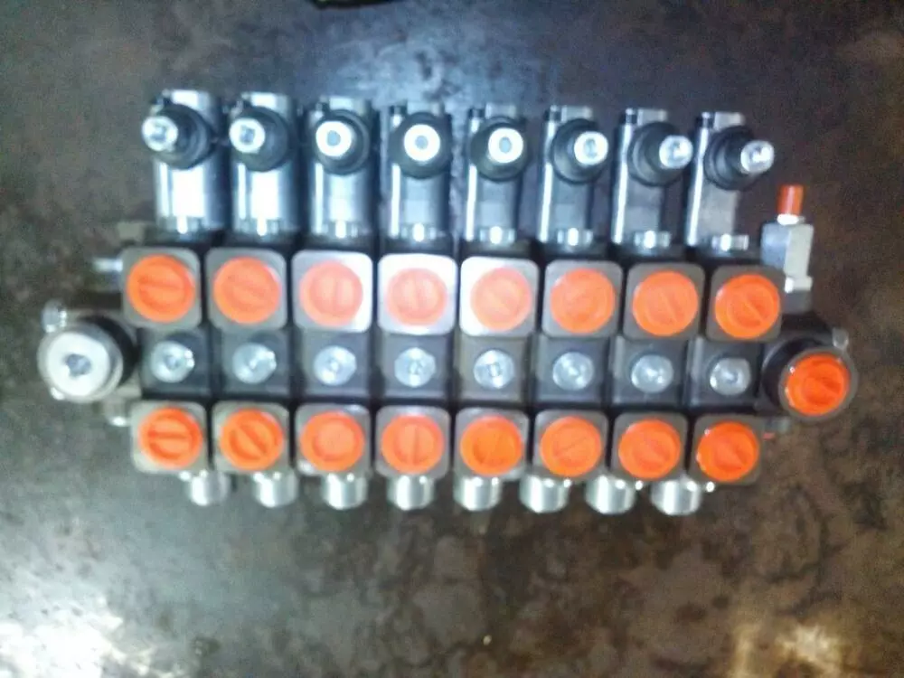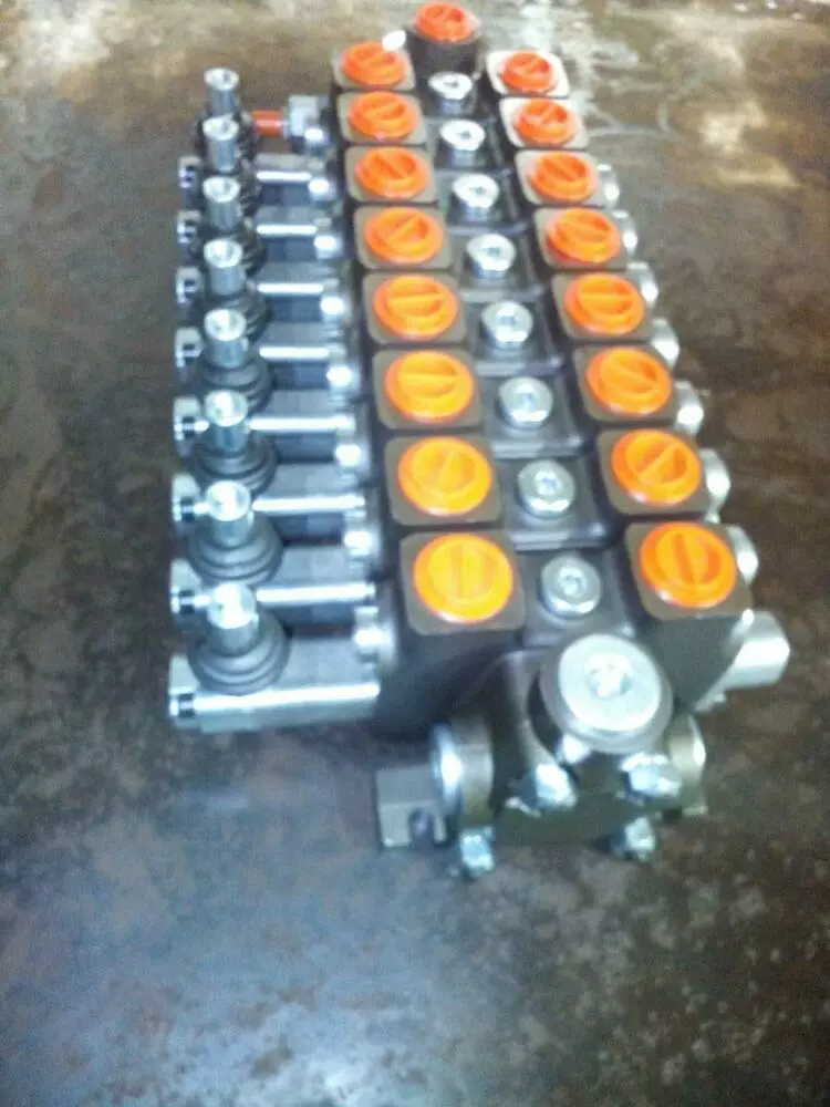 Пропорциональный 8-ми секционный гидрораспределитель РС70 с номинальной подачей масла 80 л/мин , производства Badestnost, Болгария, оригинал! Данный гидрораспределитель имеет ручное управлением, возможно установить тросовое управление, или управление посредством джойстиков, установленных непосредственно на гидрораспределителе.