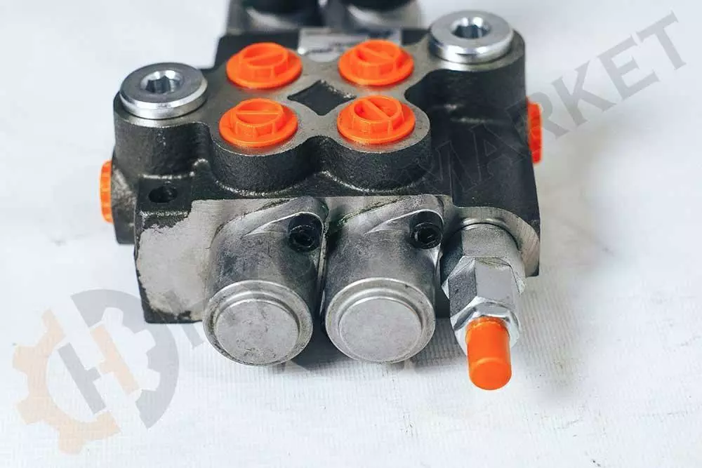 Гидрораспределитель (Болгария) моноблочный с открытым центром 02р40 1K16K16 GKZ1 служит для управления двумя рабочими органами. Рукоятка с пружинным возвратом в нейтральное положение. В нейтральном положении рукоятки рабочая жидкость поступает в маслобак (открытый центр). Имеется регулируемый главный предохранительный (ограничительный) клапан.