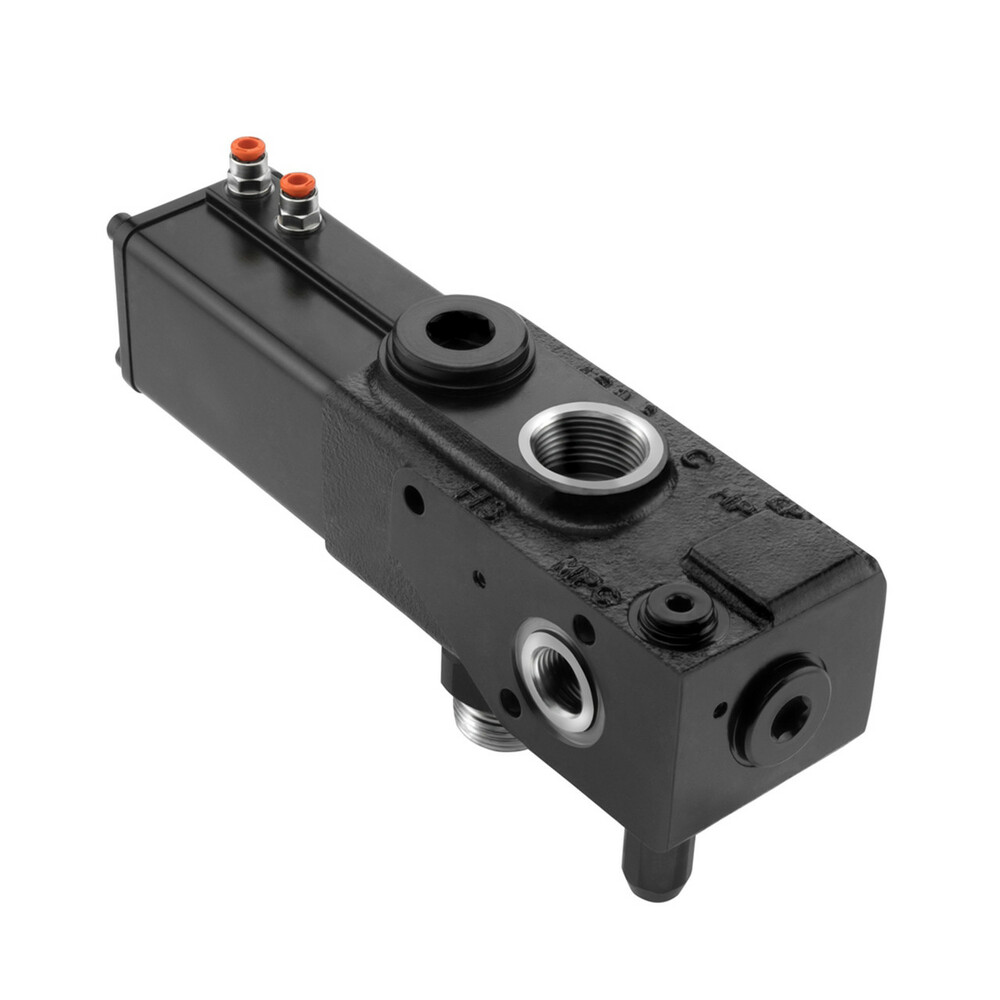 Гидравлические соединения имеют резьбу G 1” для повышения пропускной способности. Клапан также оснащен портом G ¼” для датчика давления. Пневматический порт подключается с помощью 6-мм пневматических трубок.