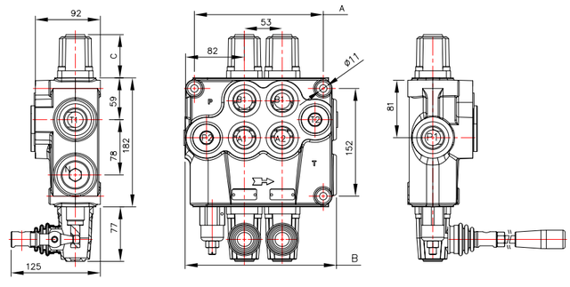 Болгарский моноблочный гидрораспределитель Badestnost 1P120 с ручным управлением, предназначен для пуска, остановки и контроля за расходом рабочей жидкости между генераторами напорного потока (гидравлические насосы) и потребителями рабочего потока жидкости (гидроцилиндры, гидромоторы). Этот распределитель оснащен ручными золотниками, которые могут переключаться в трех положениях при помощи рукоятки. Корпус изготовлен из чугуна EN-GJL300. Плунжеры изготовлены из науглероженной стали с твердым хромированием. Монтаж: распределитель крепится тремя болтами M10.