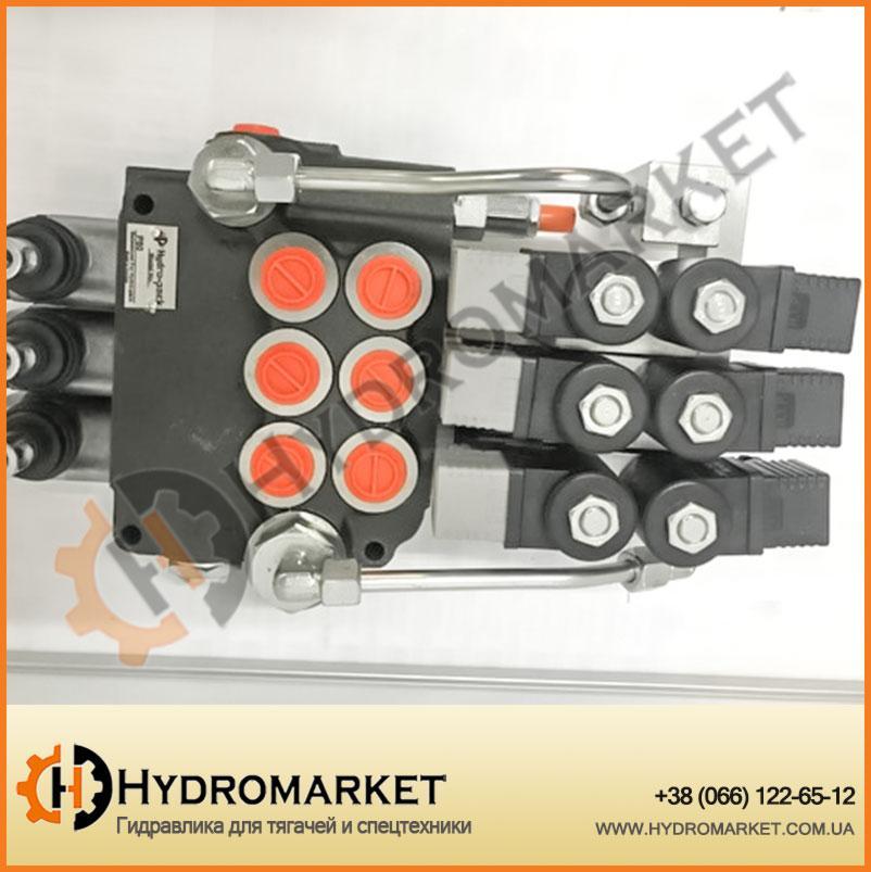 Распределитель 3p80 выполнен в варианте для параллельного распределения потока рабочей жидкости. Гидравлический распределитель представляет собой моноблочный распределитель с ручным управлением. Корпус изготовлен из чугуна, а золотники из цементируемой стали с твердым хромом. С целью увеличения ресурса распределителя его золотники закрыты с двух сторон специальными колпачками, которые обеспечивают чистоту и герметичность. На входе в распределителе установлен предохранительный клапан, который регулируется в указанном диапазоне.