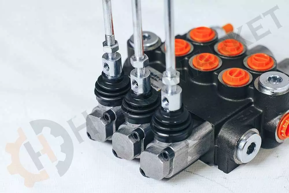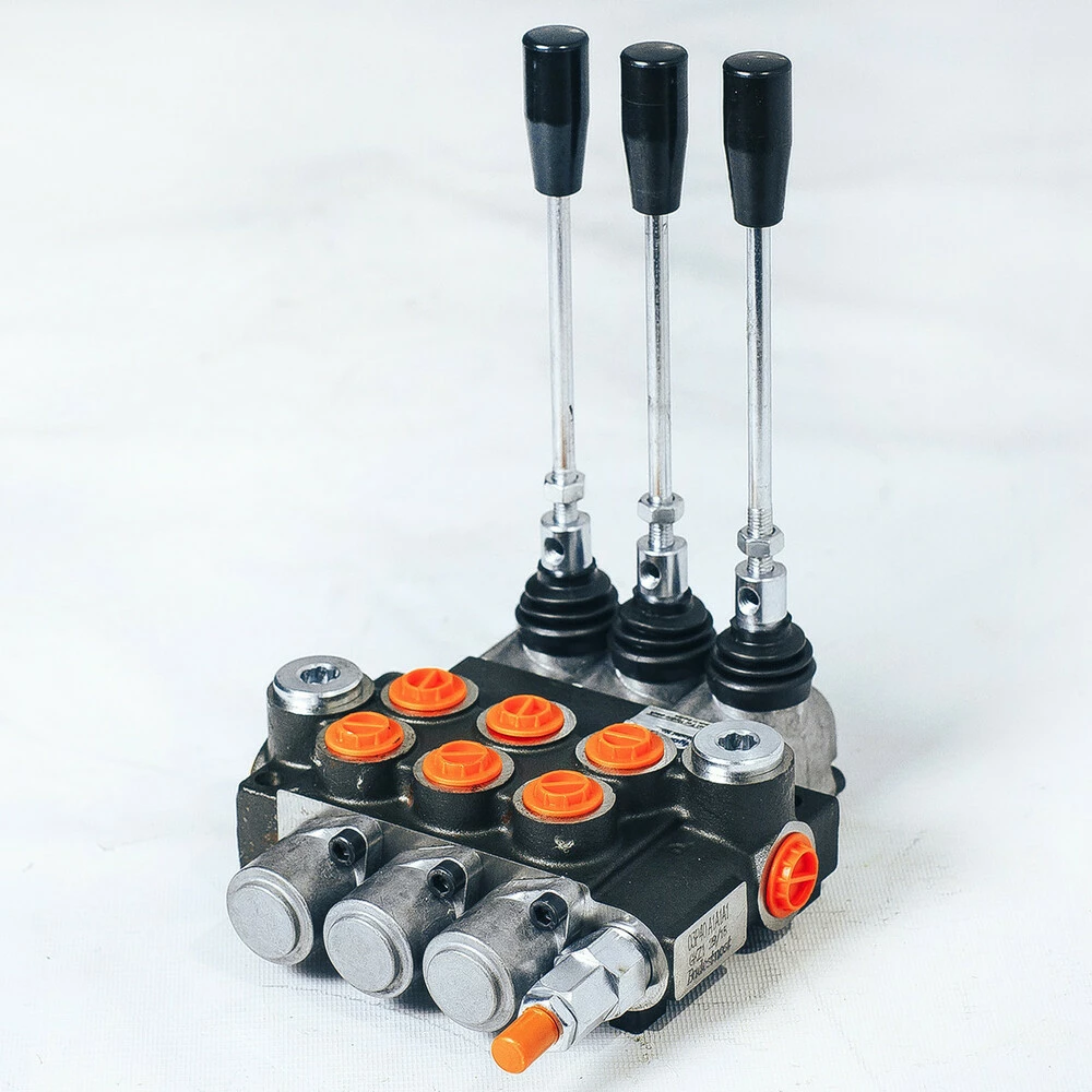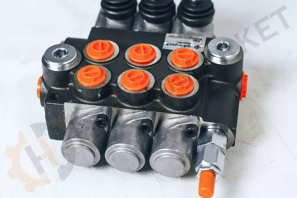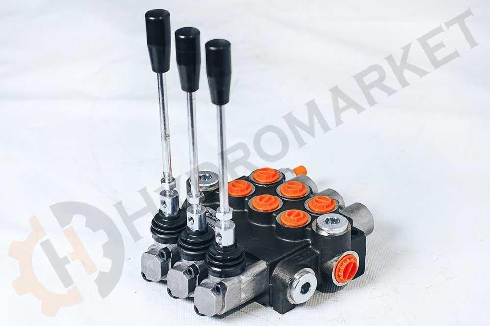 Золотники при помощи рукоятки управляют потоком жидкости в трех позициях. Золотники центрируются в среднем положении пружиной без фиксации в крайних положениях. Распределитель 3P40 выполнен в варианте для параллельного распределения потока рабочей жидкости. Золотники имеют общий обратный клапан.