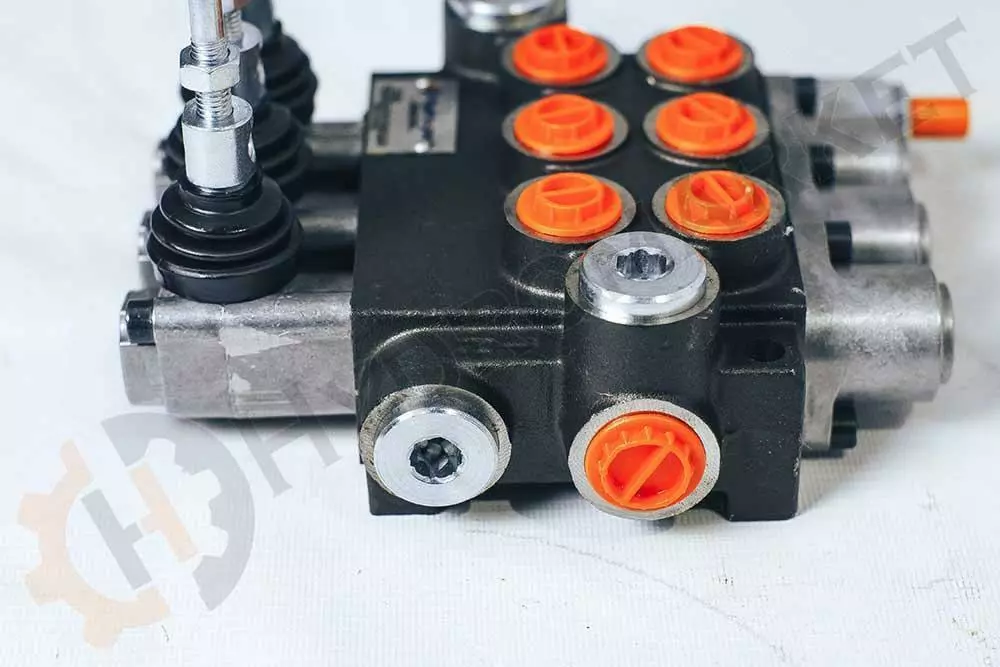 С целью увеличения ресурса распределителя 3р40 его золотники закрыты с двух сторон специальными колпачками, которые обеспечивают чистоту и герметичность. На входе в распределитель установлен предохранительный клапан, который регулируется в указанном диапазоне. Крепится распределитель к месту монтажа тремя болтами М8.