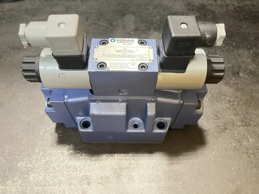 Гидрораспределители Ponar 4WEH16G72 /6AG24NETZ24 золотниковые четырехлинейные с двухсторонним электрогидравлическим управлением, с условным проходом 16 мм предназначены для управления ( изменения направления или пуска и останова потоками рабочих жидкостей в гидравлических системах.