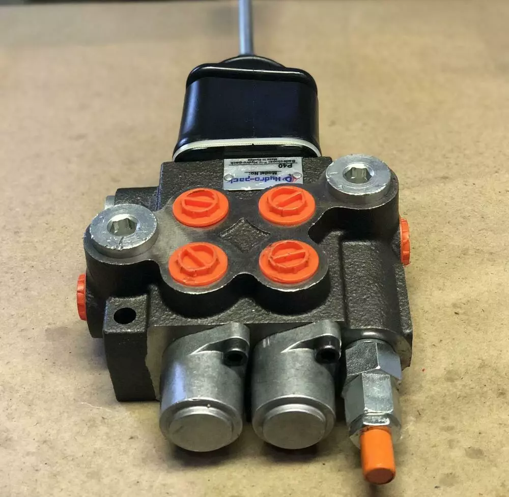Высокачественный моноблочный импортный гидрораспределитель типа Р40 производства Badestnost, Болгария, оригинал! с 4 координатным джойстиком и номинальной подачей масла от 40 л/мин. Возможность управления 2 секциями с помощью одного джойстика : Вверх, вниз - управление 1 секцией ; вправо, влево - управление 2 секцией.