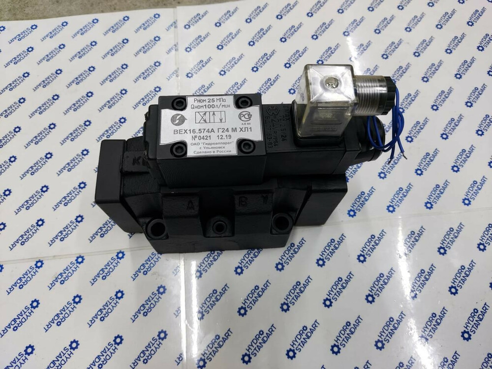 Гидрораспределители ВЕХ-16.574Е - золотниковые четырехлинейные с односторонним электрогидравлическим управлением, с условным проходом 16 мм предназначены для управления ( изменения направления или пуска и останова потоками рабочих жидкостей в гидравлических системах.
