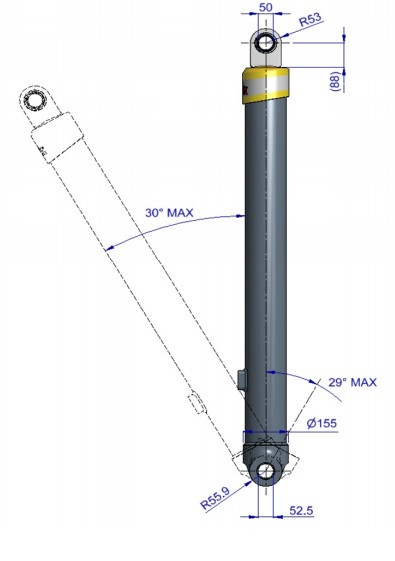 Гидроцилиндр 3-х штоковый Hyva, фронтальный с проушиной на штоке и нижней проушиной( FEE A118-3-03490-229K)