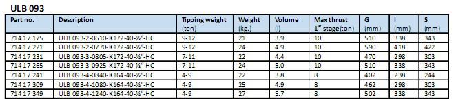 Характеристики Гидроцилиндров Hyva Серии ULB 093: