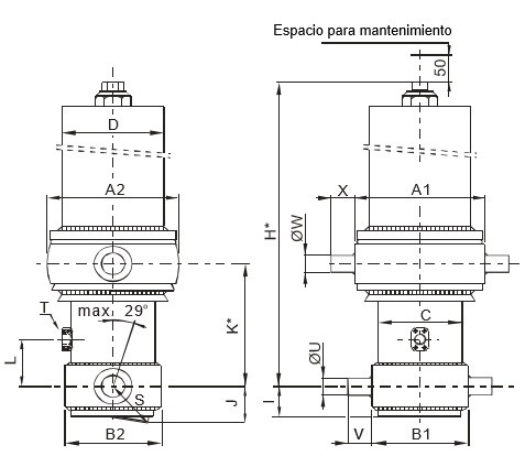 • диаметр первого штока: 169 мм