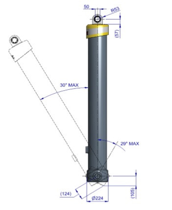 Гидроцилиндр 5-ти штоковый Hyva, фронтальный с проушиной на штоке (FE A169-5-07130-019K):
