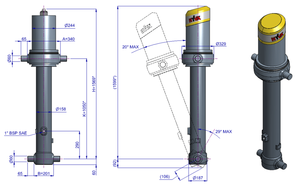 Гидроцилиндр Hyva FC A137-4-04845-014-K1050-HD-TS разработан для тяжелых условий эксплуатации. FC с диаметром 137 мм и 4 ступенями выдерживает нагрузку до 54 тонн, достигая полного хода 4845 мм. Имея максимальное рабочее давление 250 бар, этот цилиндр Hyva способен поднимать больший вес, что в свою очередь позволяет оснащать грузовики цилиндрами меньшего размера, уменьшая пространство и экономя вес.