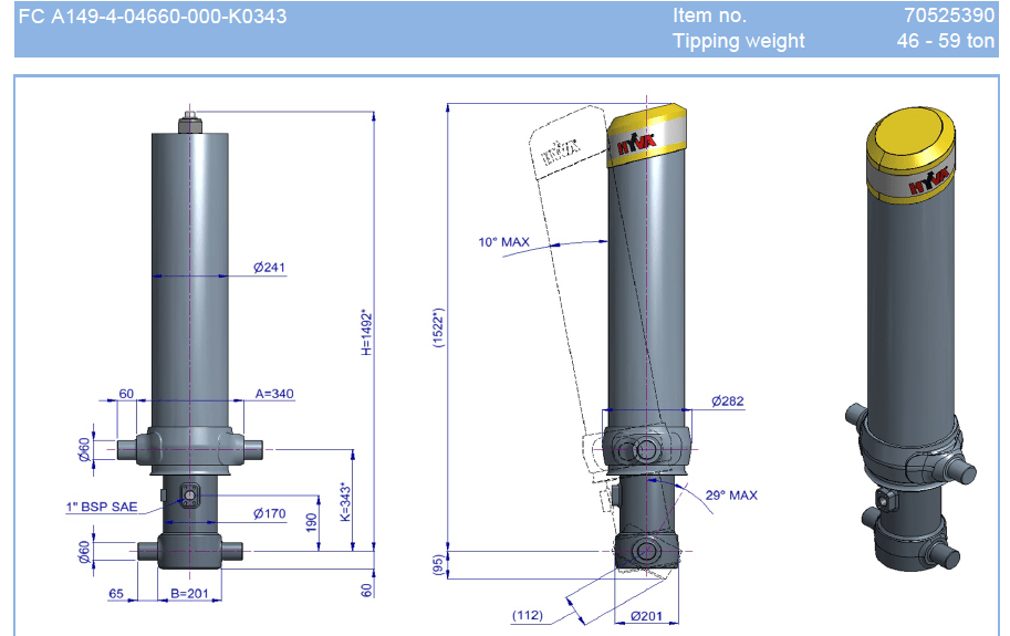 Гидроцилиндр FC A149-4-04660-000-K0343 (фронтальный с кожухом) Hyva 70525390