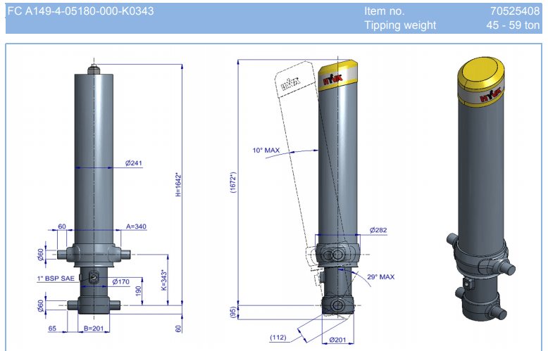 Телескопические фронтальные гидроцилиндры серии FC для самосвалов предназначены в первую очередь для работы с вертикальными передними стенками и рассчитаны на опрокидываемую массу более 100 тонн. Цилиндр FC упорного типа легок и прочен.