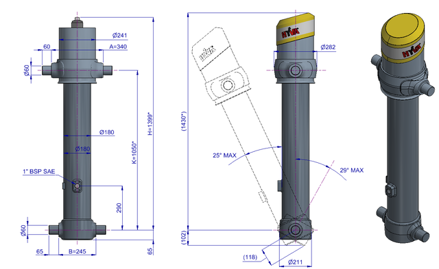 Телескопические фронтальные цилиндры FC в первую очередь предназначены для прямых изголовий с грузоподъемностью более 100 тонн. Цилиндр типа FC легкий, прочный, не требует технического обслуживания и обеспечивает максимальную устойчивость самосвала. В течение многих лет опрокидывающиеся цилиндры Hyva FC заслужили репутацию своей надежности и соотношения цены и качества.