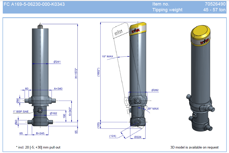 Фронтальные телескопические гидроцилиндры компании HYVA типа FC HD предназначены для самосвалов и полуприцепов самосвалов с задней разгрузкой. Отрасли применения - горное дело, строительство, сельское хозяйство и т.п..