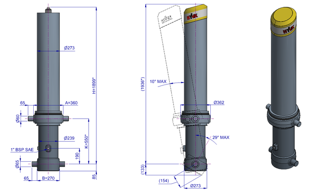 Телескопические фронтальные цилиндры FC в первую очередь предназначены для прямых изголовий с грузоподъемностью более 100 тонн. Цилиндр типа FC легкий, прочный, не требует технического обслуживания и обеспечивает максимальную устойчивость самосвала. В течение многих лет опрокидывающиеся цилиндры Hyva FC заслужили репутацию своей надежности и соотношения цены и качества.