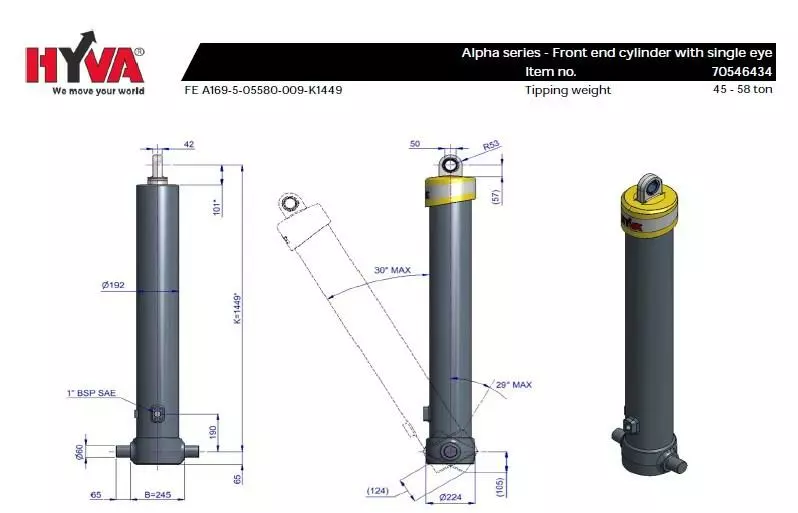 Цилиндры FE производства Hyva легки, прочны, стабильны и не требуют технического обслуживания. Обычно они применяются с наклонными передними стенками. Цилиндры FE способны осуществлять разгрузку опрокидыванием груза весом более 100 тонн. Наши цилиндры FE упорного типа для разгрузки опрокидыванием способствуют снижению веса и ускорению разгрузки автомобилей жесткой конструкции и (полу)прицепов.