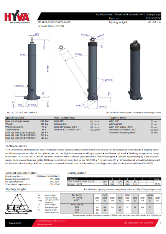 Гидроцилиндр FE A169-5-05630-009-K1459 (фронтальный с ухом) (аналог FSH37557K) HYVA