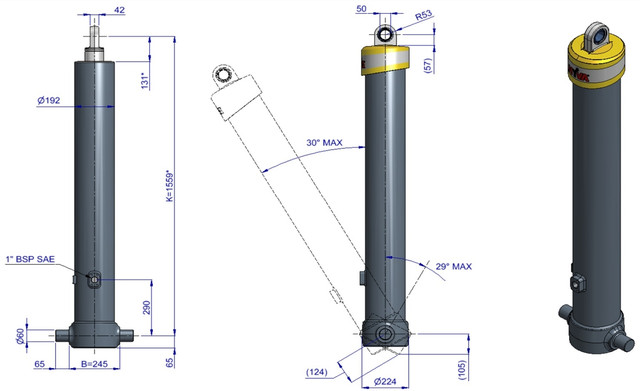 Характеристики гидроцилиндра FE A169-5-06230-019-K1559x290 (70546532)