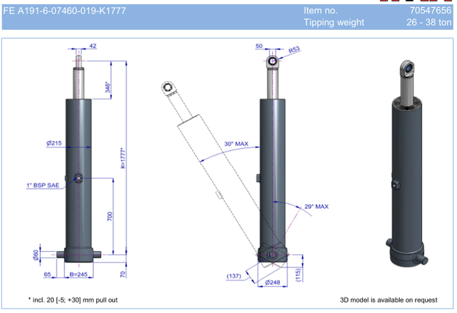 Цилиндры FE производства Hyva легки, прочны, стабильны и не требуют технического обслуживания. Обычно они применяются с наклонными передними стенками. Цилиндры FE способны осуществлять разгрузку опрокидыванием груза весом более 100 тонн. Наши цилиндры FE упорного типа для разгрузки опрокидыванием способствуют снижению веса и ускорению разгрузки автомобилей жесткой конструкции и (полу)прицепов.