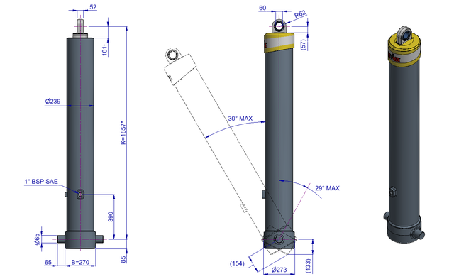 Гидроцилиндр FE A214-5-07630-011-K1857 (фронтальный с ухом) HYVA