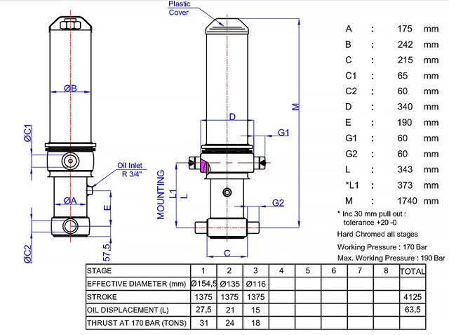 Характеристики гидроцилиндра GHS 155-3-4125H-L343 H (43155341256)