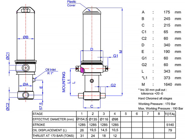 Этот гидроцилиндр способен выдерживать максимальное давление до 190 бар и обладает грузоподъемностью 31 тонна, что гарантирует его надежность и эффективность в самых требовательных условиях. Диаметр уха GE 50 (Ø50) обеспечивает надежное крепление, а объем в 79 л позволяет поддерживать стабильную работу системы. Hidromas GHS 155-4-5140-L343 Н - идеальный выбор для тех, кто ищет долговечное и мощное гидравлическое решение.