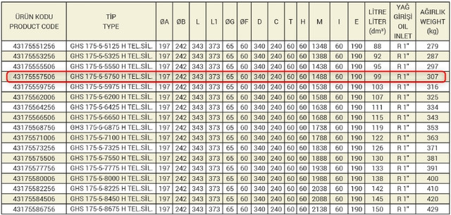 Гидроцилиндр GHS 175-5-5750 H (фронтальный)