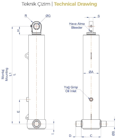 Гидроцилиндр Hidromas GHS 175-5-8000 C (фронтальный с ухом)
