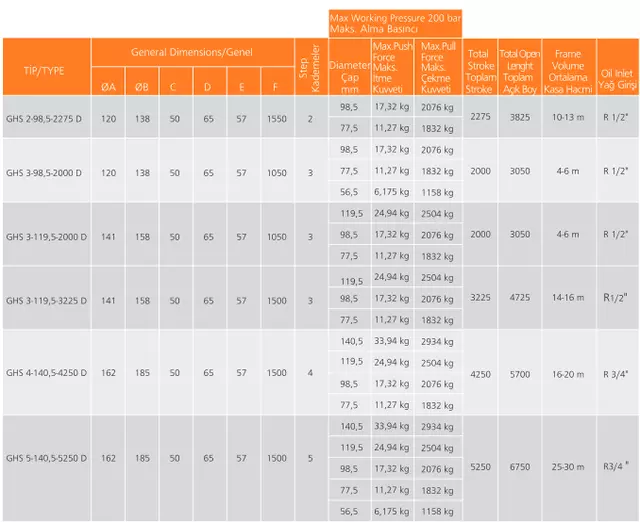 Модели гидроцилиндров Hidromas серии D в наличии и под заказ: