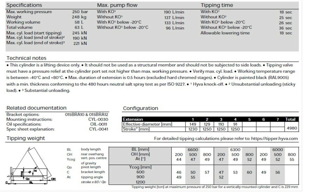Гидроцилиндр Hyva FC A149-4-04980-000-K0343 (фронтальный с кожухом)