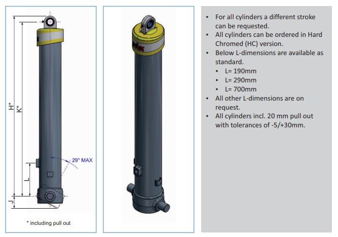 Фронтальные гидроцилиндры HYVA FC и FE предназначены для самосвалов и полуприцепов.