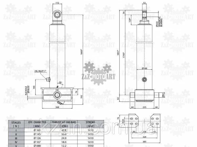 Гидроцилиндр MF 165-5-7050 «BINOTTO» для полуприцепа