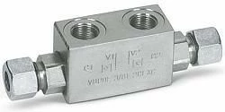 Гидрозамок двустороннего действия VBPDE предназначен для блокировки движения механизма (к примеру - гидроцилиндра) в направлениях туда и обратно.