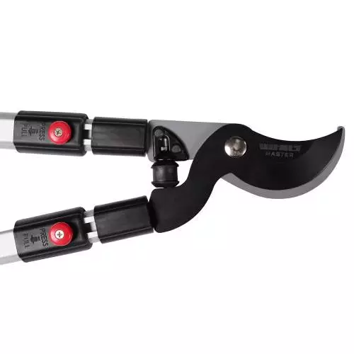 Висувні трубчасті ручки дають можливість регулювати довжину інструменту від 630 до 910 мм. Овальний профіль у поєднанні з ребрами жорсткості забезпечує високу міцність конструкції та легко витримує навантаження під час натискання. Велика довжина дає змогу обрізати високі гілки крон та колючих чагарників, не застосовуючи додаткових пристроїв.