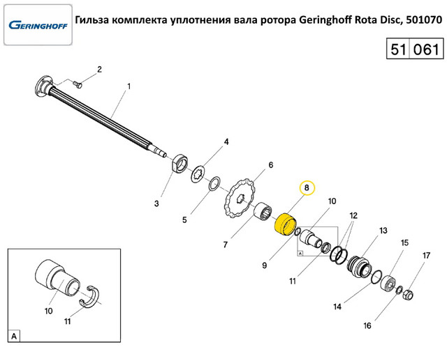 Вал ротора в сборе (501051 Rota Disc Geringhoff)