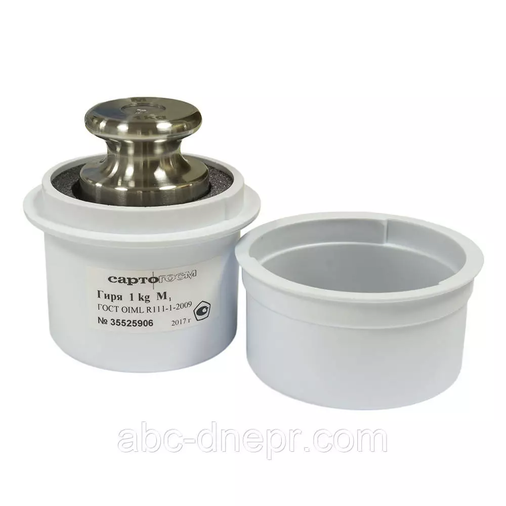 Гиря 1 кг, класс точности - М1, материал: хромированная сталь, форма: в виде цилиндра с головкой, погрешность +/- 50 мг, габариты: диаметр-48мм, высота-82мм, упаковка: пластиковый круглый цилиндр с внутренним уплотнителем