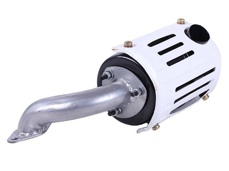 Изготовлен из металла покрытого слоем краски для защиты от коррозии. Глушитель снабжен металлическим экраном предотвращающим ожег от случайного соприкосновения.