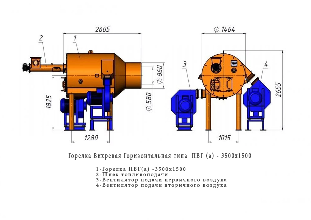 Горелка вихревая ПВГ(а)-3500 в вертикальном исполнениии