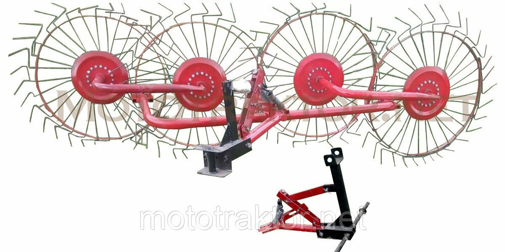 Грабли для мототрактора 4 колеса усиленные (солнышко, ворошилки)