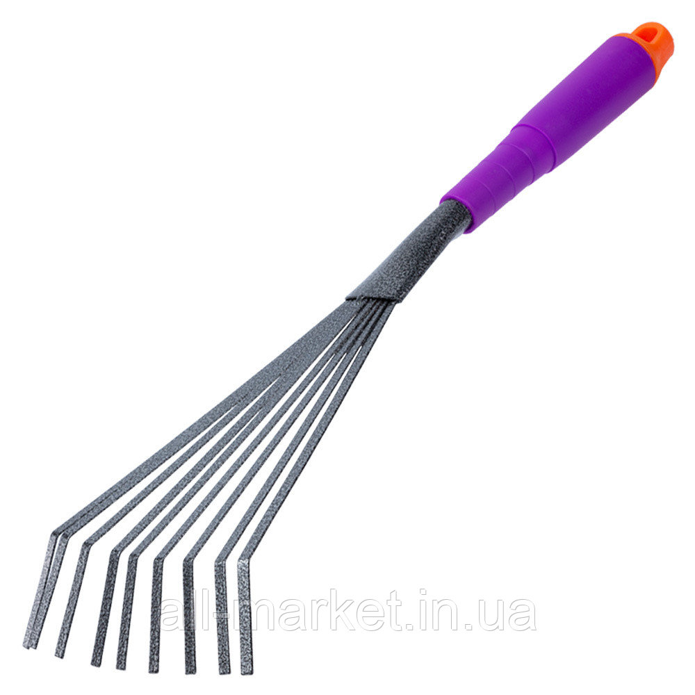 Грабли веерные (полая ручка) (ABS) GRAD (5044645) Предназначены для сбора мелкого мусора на клумбах и грядках. По окончанию работы необходимо очистить рабочую часть инструмента от остатков грунта. Особенности: Изготовлены из высококачественной углеродистой стали Покрыты порошковой эмалью для предохранения от коррозии и налипания земли Эргономичная пластмассовая рукоятка хорошо ложится в ладонь