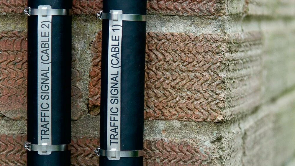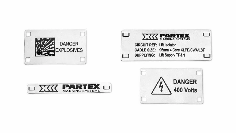 Гравированные маркеры из нержавеющей стали AISI 316 предназначены для маркировки проводов и кабелей везде, где вследствие царящих сложных условий требуется наивысшая устойчивость описаний. Они устойчивы к огню, воде, влаге и коррозии, благодаря чему находят применение в морской, горнодобывающей, нефтехимической, железнодорожной, а также в пищевой и фармацевтической промышленности. Маркеры крепятся к кабелю с помощью стальных хомутов.